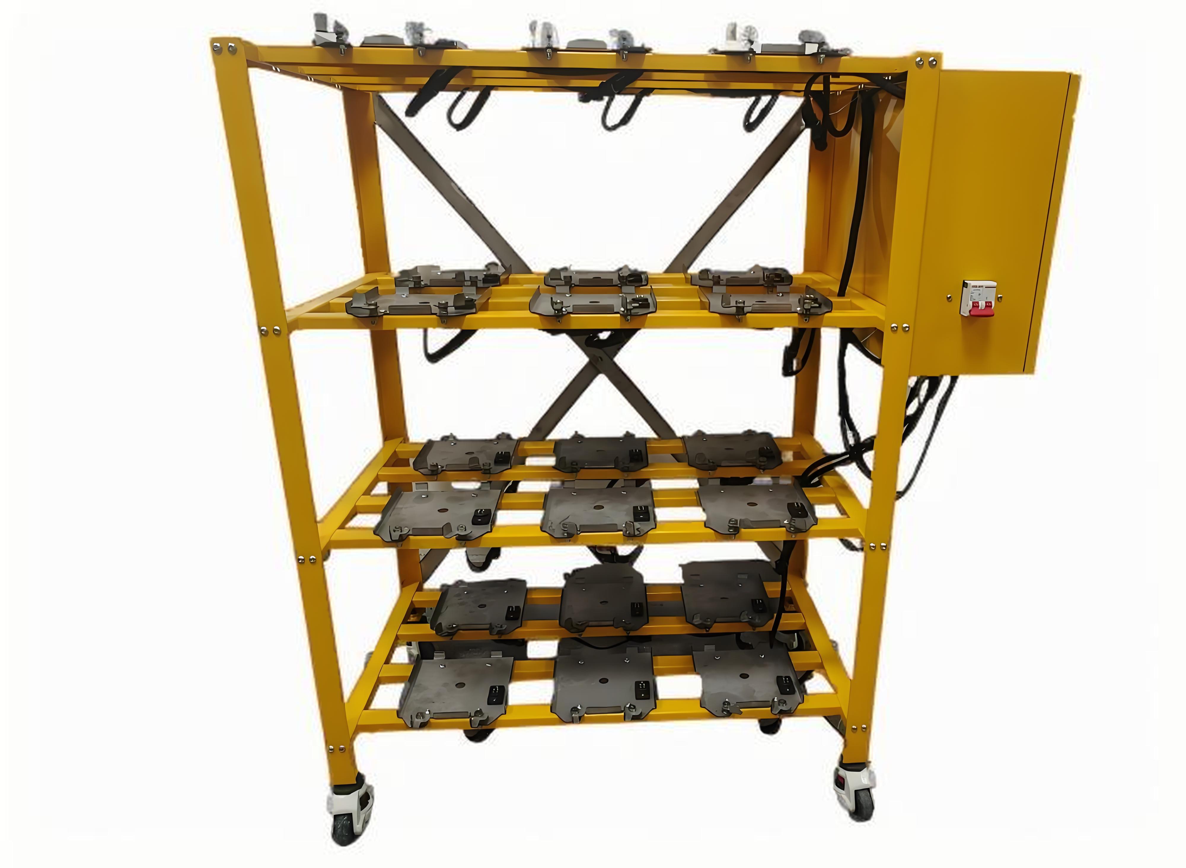 灯具配备齐全的充电装置,可选便携式充电器(1充8)、充电箱(1充8)、充电架(最多充32个)、充电一体化拖车(最多充电162个灯)。